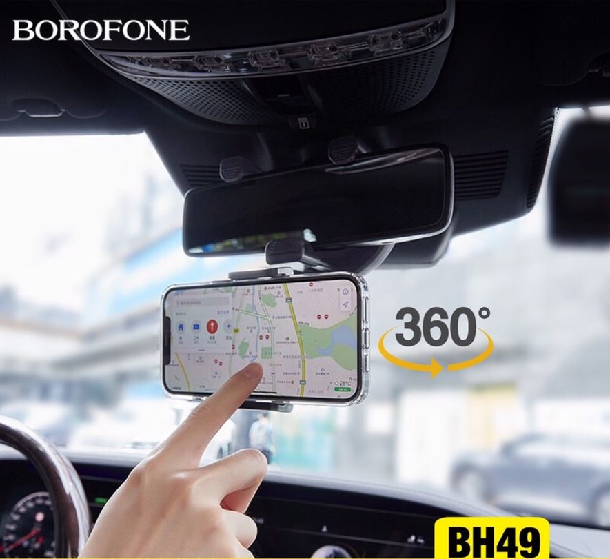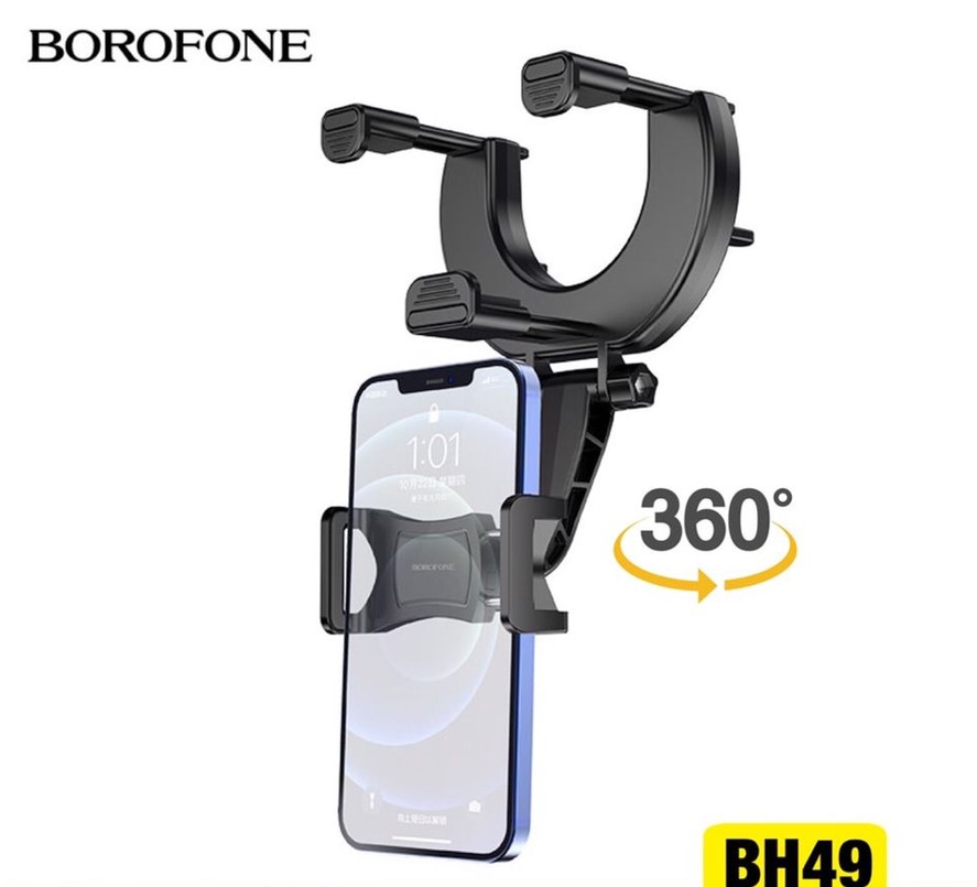 Βάση αυτοκινήτου πλήρως περιστρεφόμενη, προσαρμοζόμενη στον καθρέφτη. Συμβατή με όλα τα κινητά. Σταθερή και εύκολη στην τοποθέτηση. Προϊόν της κορυφαίας εταιρίας αξεσουάρ Borophone.